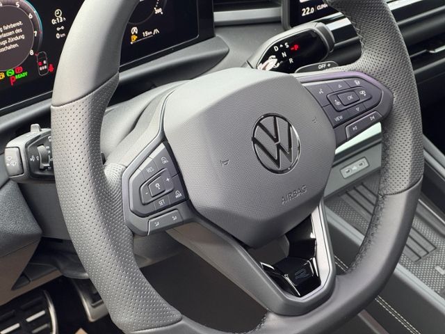 Außenspiegel elektr. verstell-, heiz- und anklappbar mit Spiegelabsenkung rechts; Seitenscheiben hinten und Heckscheibe abgedunkelt; Dachreling schwarz; Außenspiegel mit Umfeldleuchte und Projektionsfunktion; Frontscheibe Verbundglas, wärmedämmend; Kofferraumdeckel / Heckklappe elektr. betätigt (Schließen, sensorgesteuert öffnend, Fernentriegelung); Einstiegsleisten (Aluminium); Außenspiegel schwarz lackiert; Stoßfänger R-Line